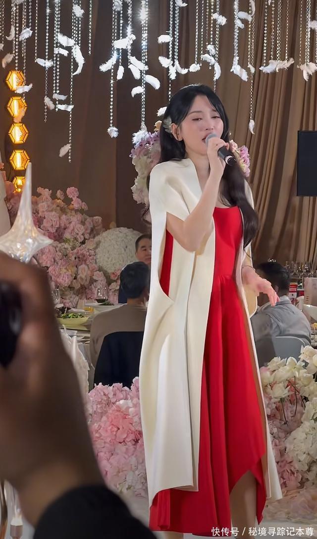 台上,她唱到副歌部分时,不禁望向一对新人,眼底氤氲泪光,歌声满含深情。