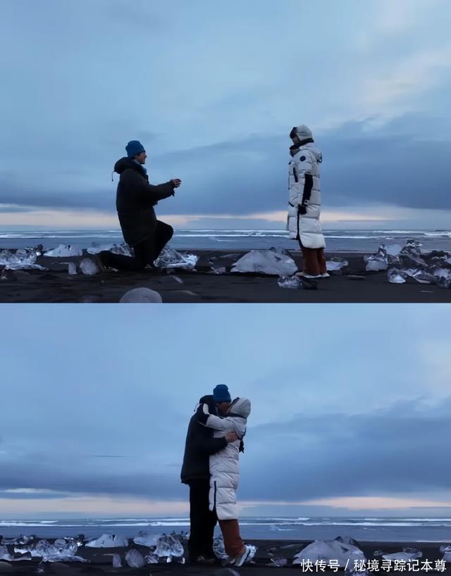 12月23日,孙丞潇精心准备在冰岛钻石沙滩,向恋爱3年的女友金莎求婚。